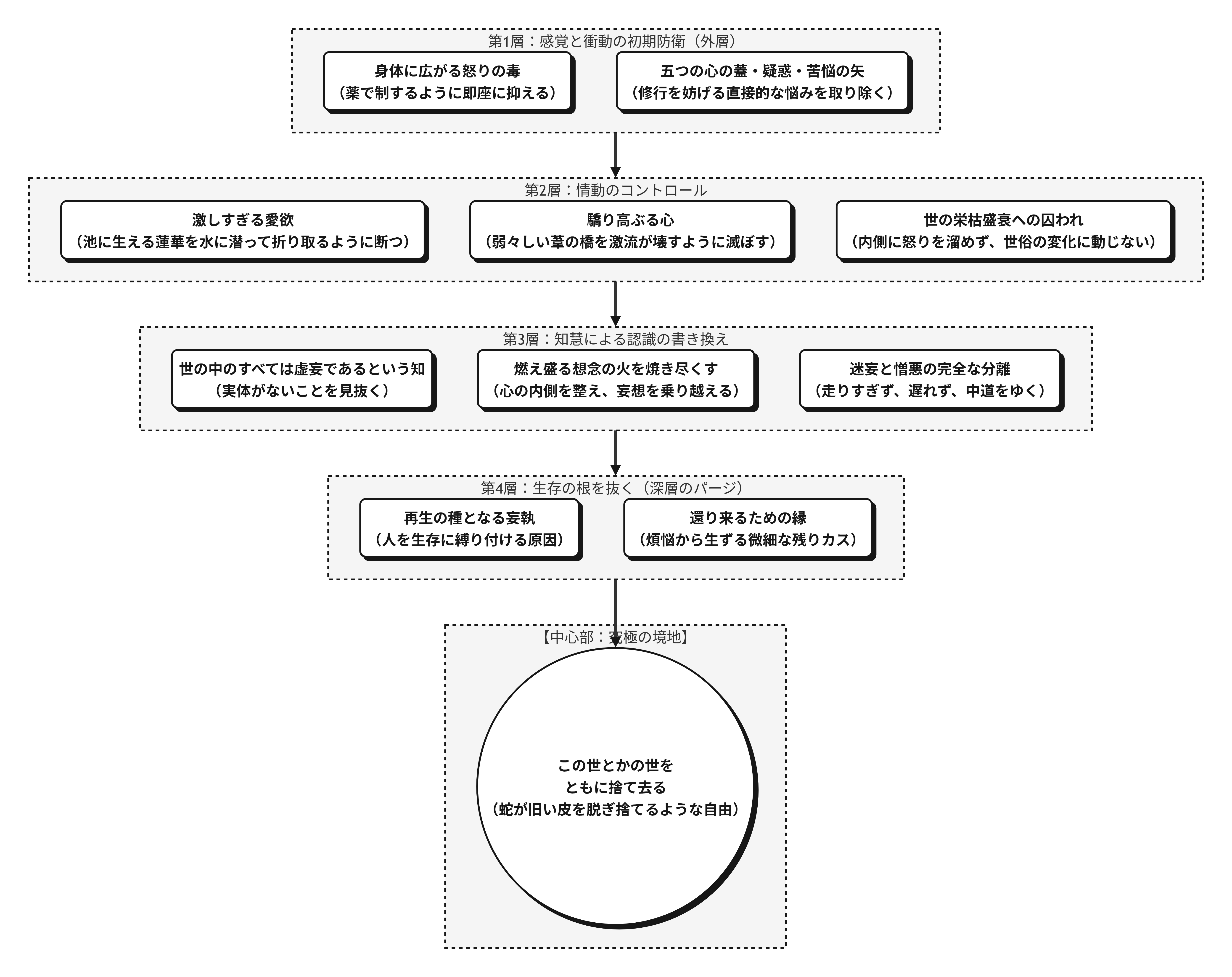 図解 「蛇の脱皮」:多層的煩悩パージ(消去)プロセス