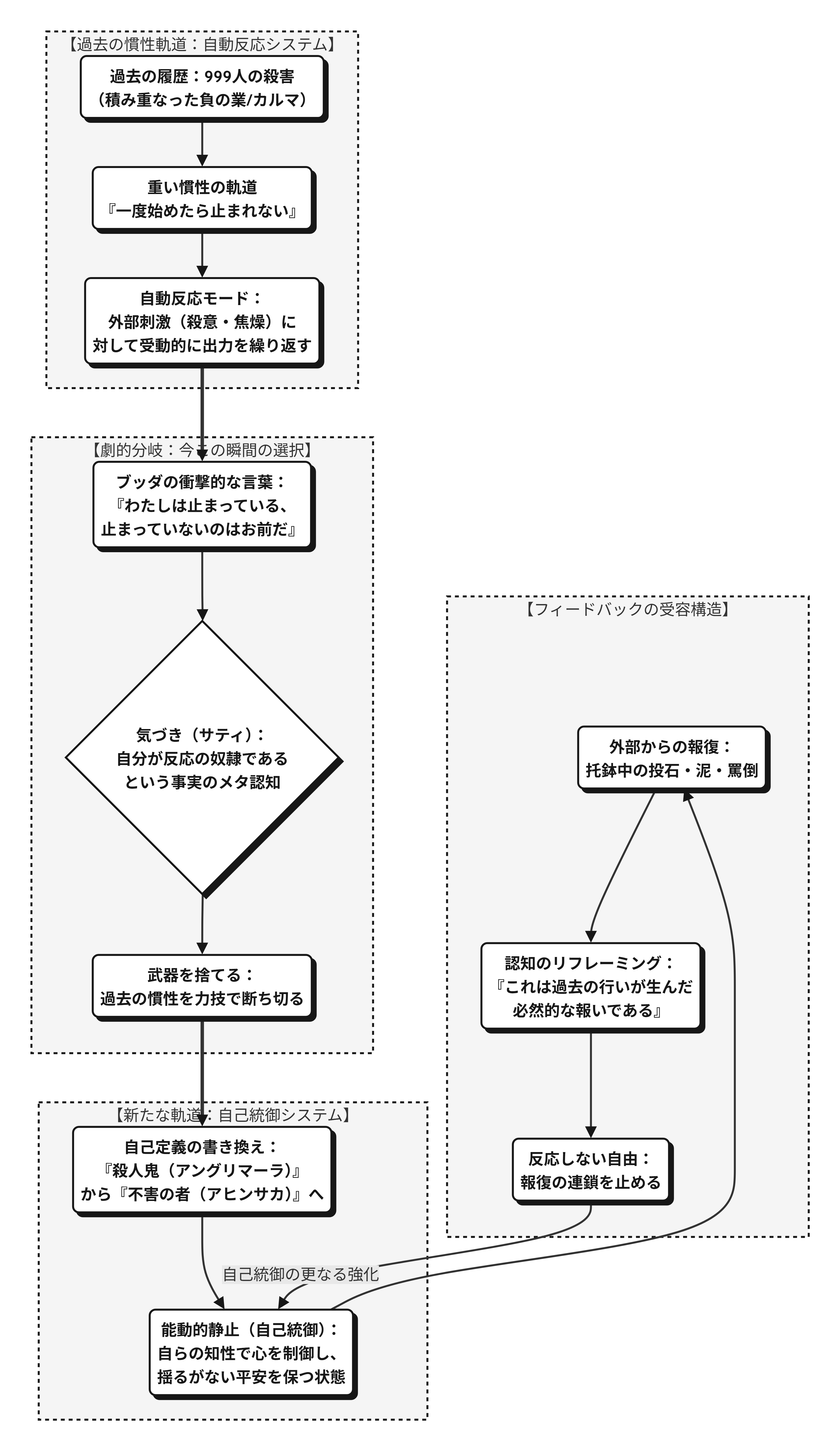 図解 アングリマーラの自動反応から自己統御への転換図