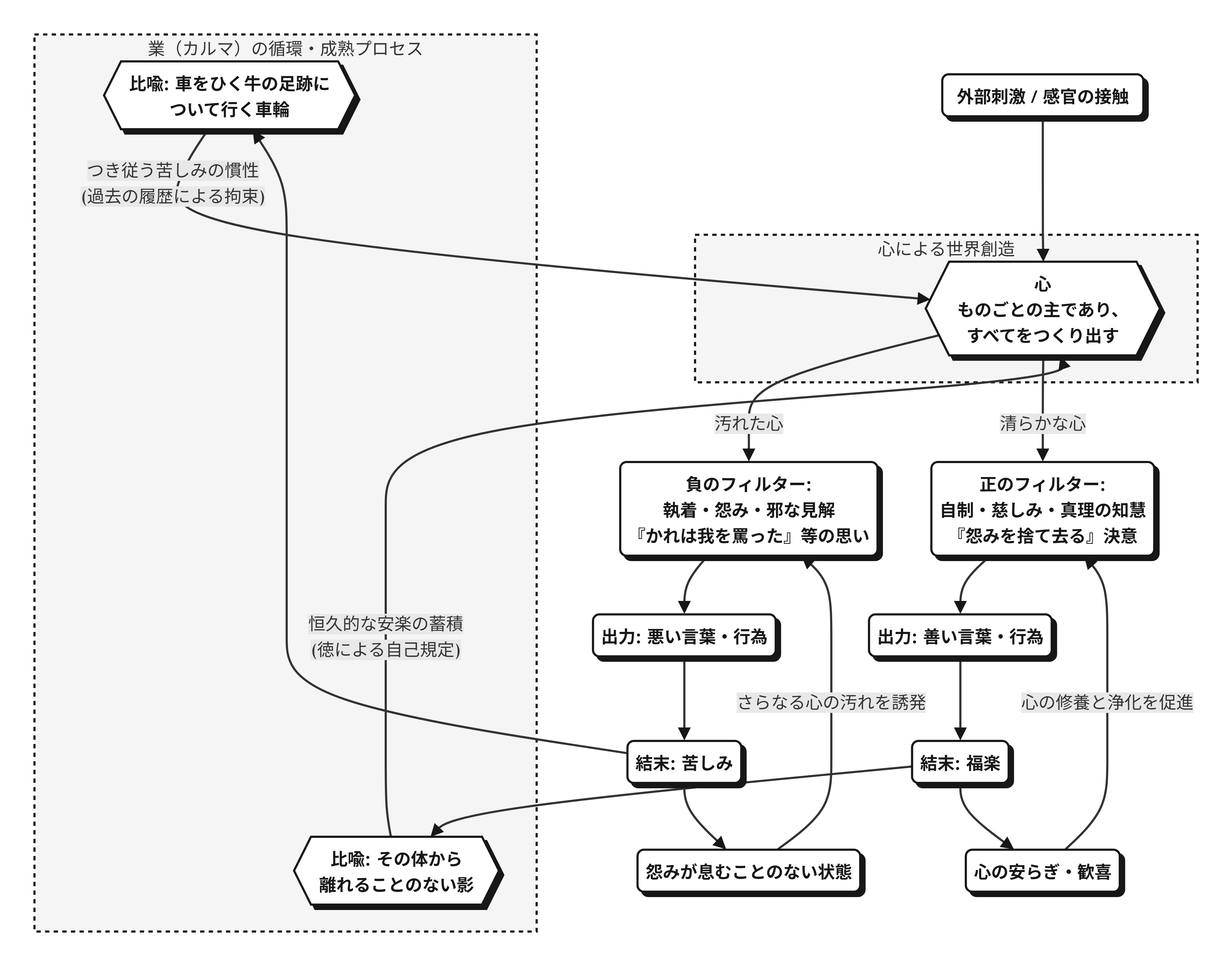 図解 心が作り出す世界と業(カルマ)の循環システム図